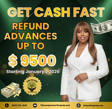 GET CASH FAST! 💵 Start 2026 strong with a REFUND ADVANCE up to $9,500! Applications open January 2, 2026. Don't wait—secure your advance today!